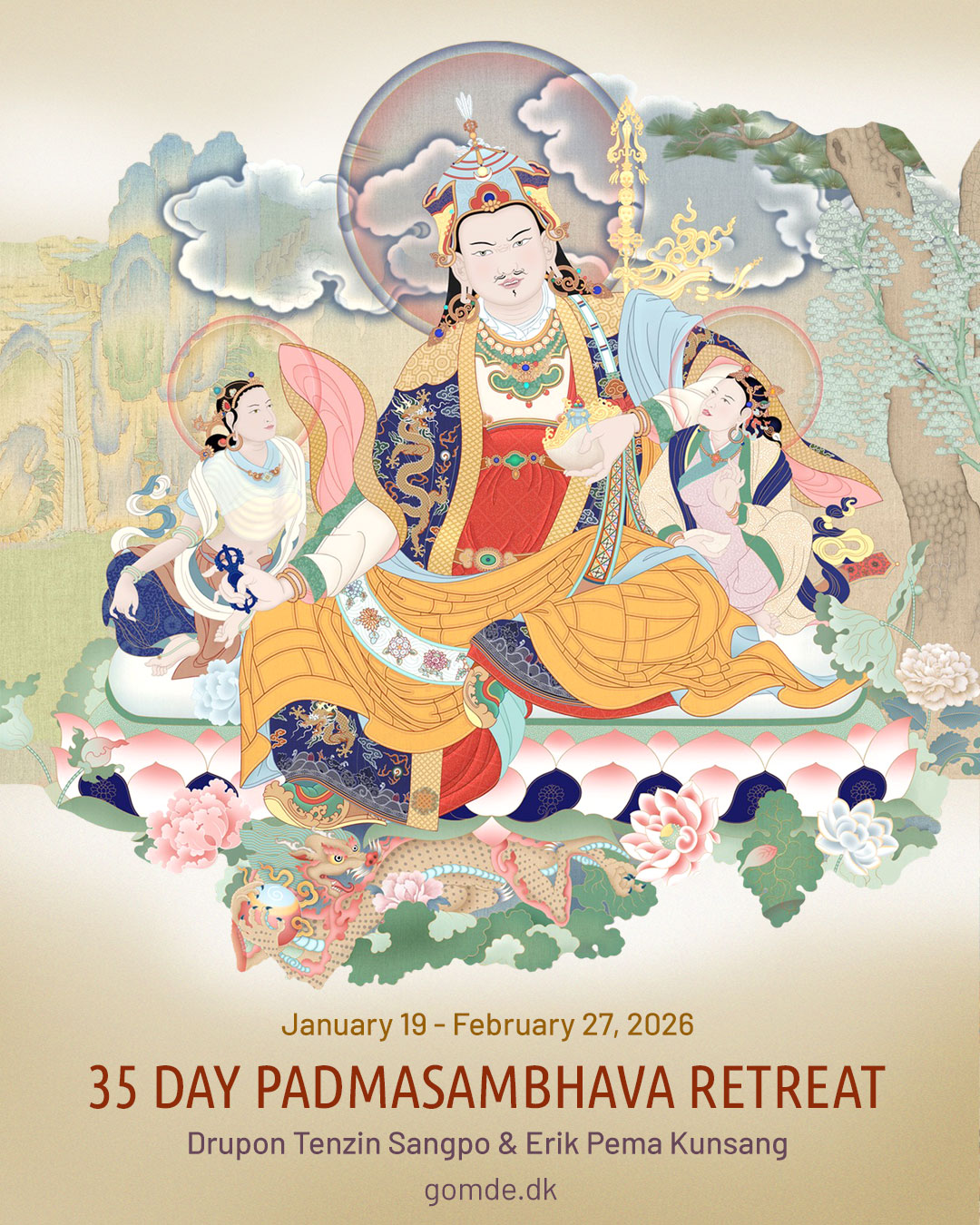 For the fourth time, the 35 day Padmasambhava retreat will take place at Gomde, Denmark.
